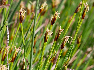 Sedges are starting to flower now, though many are still too young for me (I'm not a Carex expert) to determine. However, more and more species are coming up now and the one below was easy. A series of star like flattened female spikelets in a cliffside bog could only be Star Sedge.